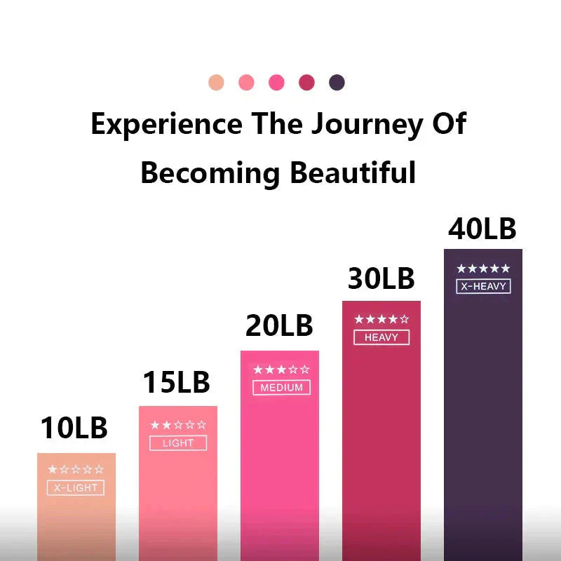 💪 Variety of Resistance Levels: This set includes five bands, each offering a different level of resistance to accommodate every fitness level and type of exercise: